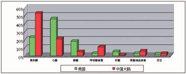 每个国家由于生活习惯、自然环境和一些遗传因素的不同,各种疾病的发病率也有明显的区别。这种区别就会导致临床检查项目的区别。由于临床检查项目的不同,所以临床使用的设备也会有一定的差异。图3所示中国大陆和美国脏器核医学检查比例有明显区别。